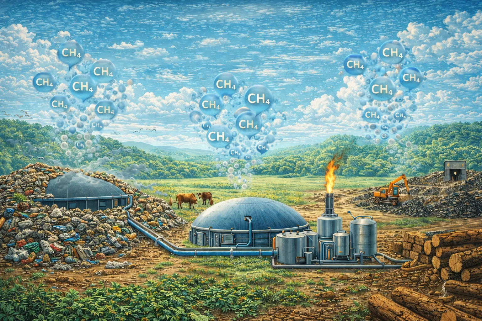 Tempat pembuangan sampah, pertanian, dan tambang melepaskan metana—menangkapnya mencegah emisi 28x lebih kuat daripada CO2.