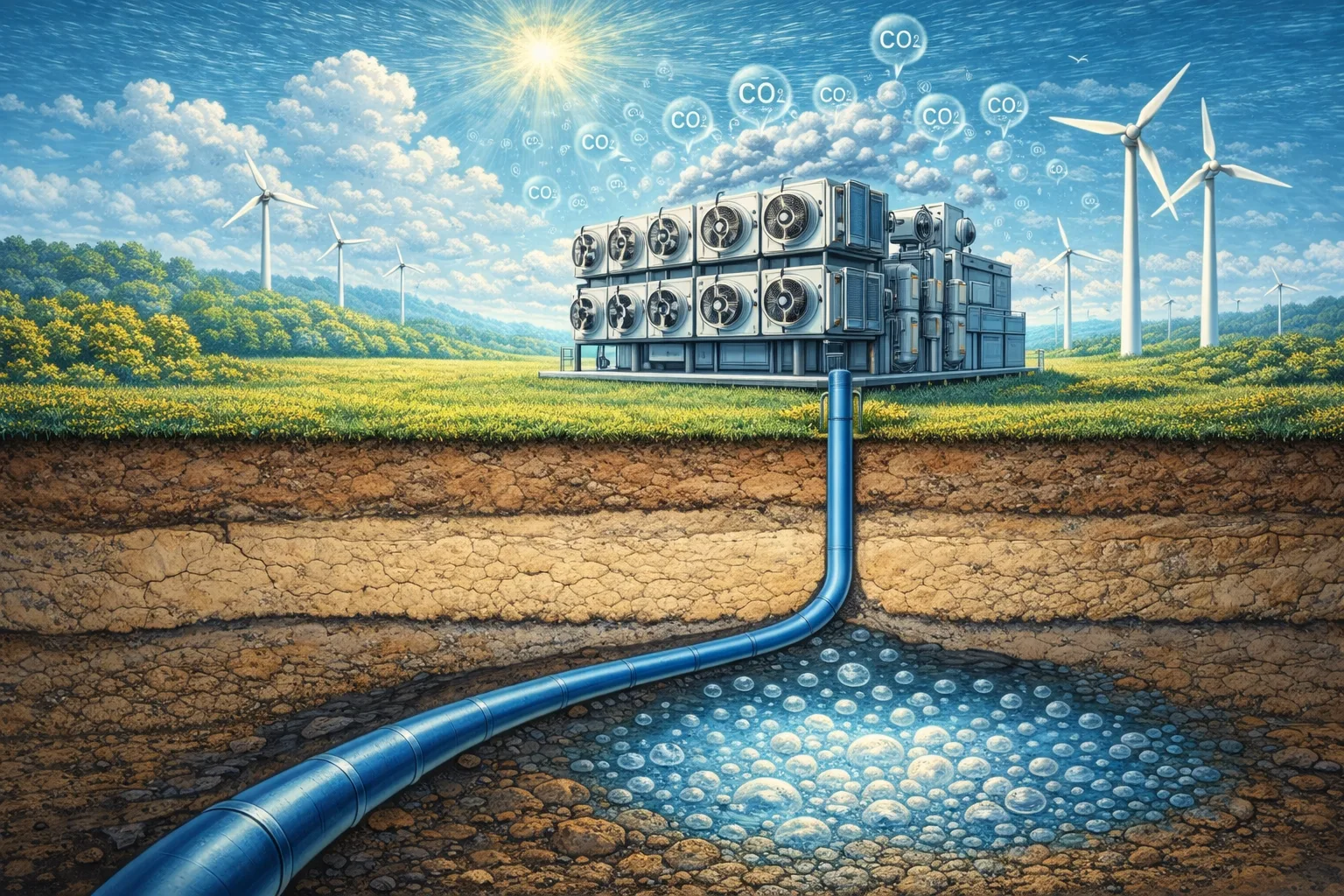 Mesin mengekstrak CO2 dari atmosfer dan simpan di bawah tanah secara permanen.